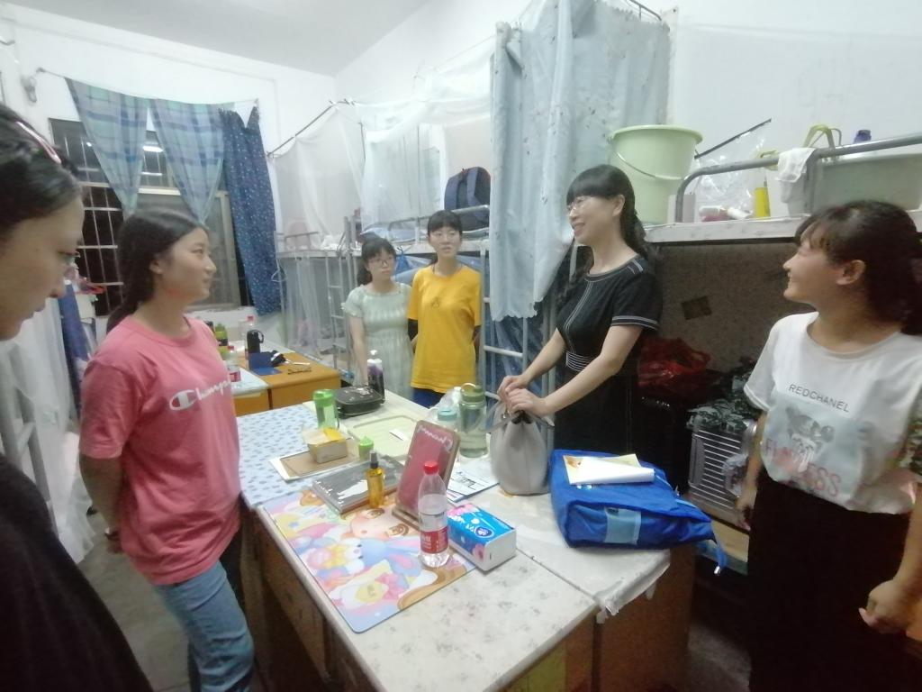 何旭娟副校长仔细地了解了梁水玉同学的家庭的具体情况,给她讲述了学校的一些资助政策和奖助学金情况,希望梁水玉同学安心读书,不要过于担心生活问题。勉励梁水玉同学作为新寝室长要敢于担当,承担起自己的责任。