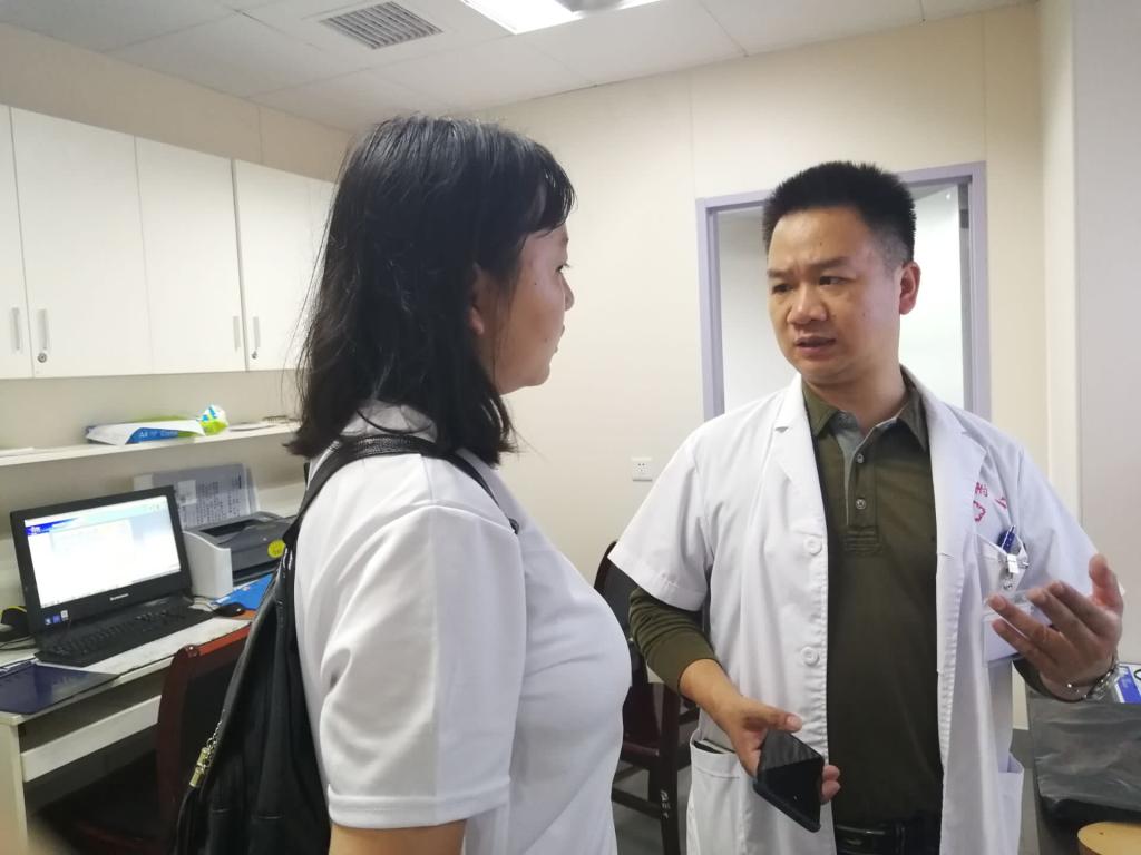 2019年10月10日下午,刘小兰同学在同学的陪同下来到了南华大学附属第二医院骨关节外科。了解到刘小兰同学的实际情况,谭光华教授推迟了下午4点要搭乘去外地参加学术会议的飞机,在他的办公室亲自接待了刘小兰等同学。谭光华教授耐心地询问了刘小兰同学的病史,细致地为她进行了体格检查,认真查看核磁共振照片,最终给出了“膝盖内侧半月板轻微受损”的诊断。他为刘小兰同学拟定了初步的治疗方案,并嘱咐她要注意合理饮食、控制体重、适度锻炼并避免剧烈运动。