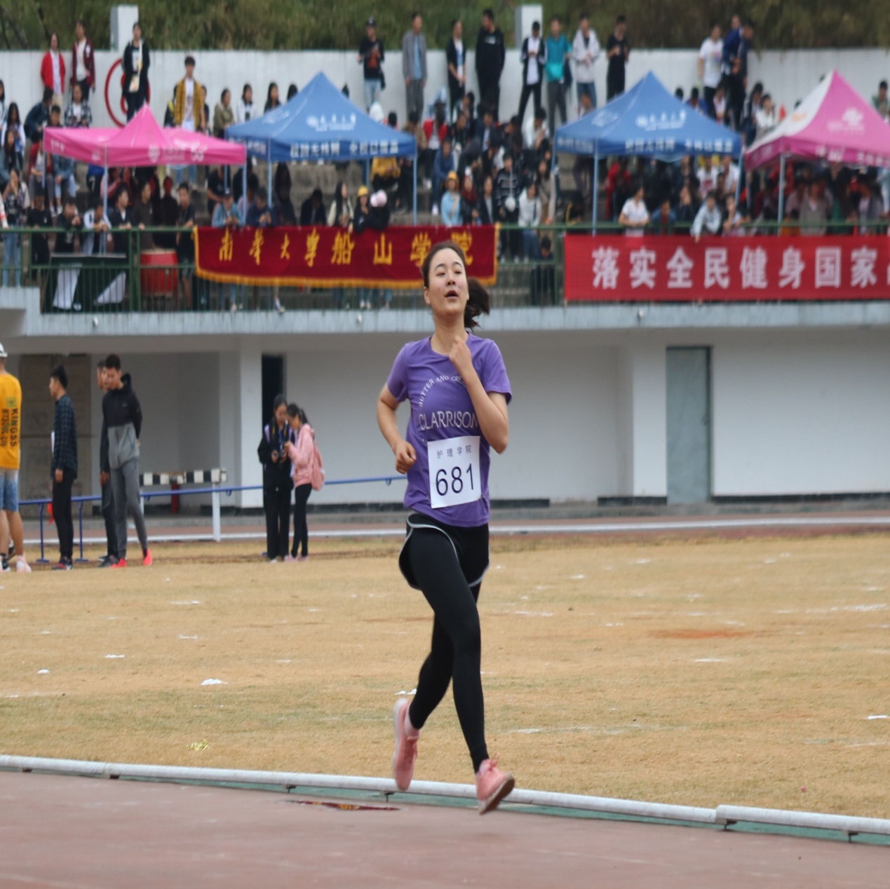 2019年10月12日下午,南华大学学生田径运动会学生女子组1500米预决赛在红湘校区北校田径场顺利进行。护理学院运动员潘彤彤在此次比赛中以6分24秒的成绩获得了第六名。