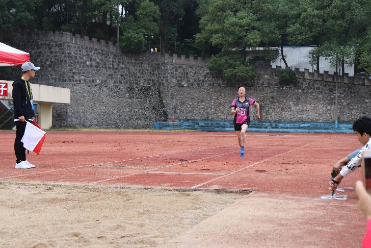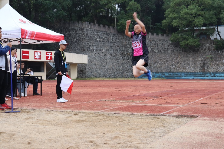 2019年10月12日,南华大学2019年教职工运动会在红湘校区南校田径场如火如荼地开展。运动场上的比赛持续进入白热化阶段。护理学院院长廖力参加女子乙组跳远比赛,最终以3.26米的好成绩摘得季军。