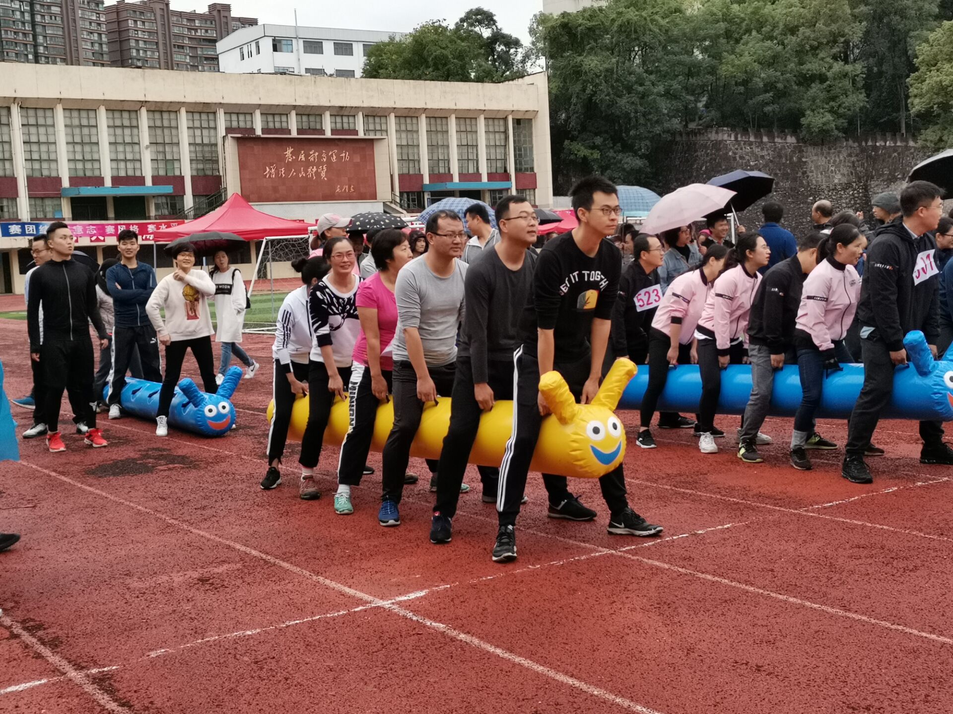 2020年10月16日下午,南华大学2020年教职工运动会毛毛虫竞速比赛在南校田径场火热举行。护理学院代表队由李翼、黄延锦、吴飞、王淑敏、苏银花、夏代会等六位老师组成,他们团结一心、全力以赴,最终取得第八名的成绩。