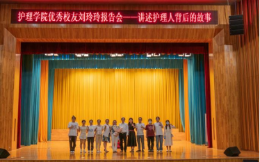 5月21日下午,护理学院邀请2005届校友、南方医科大学顺德医院内分泌与代谢科护士长、全国巾帼建功标兵刘玲玲学姐作励志报告。报告会在南华礼堂举行,学院党委书记袁春阳主持,学院近600名同学参加。