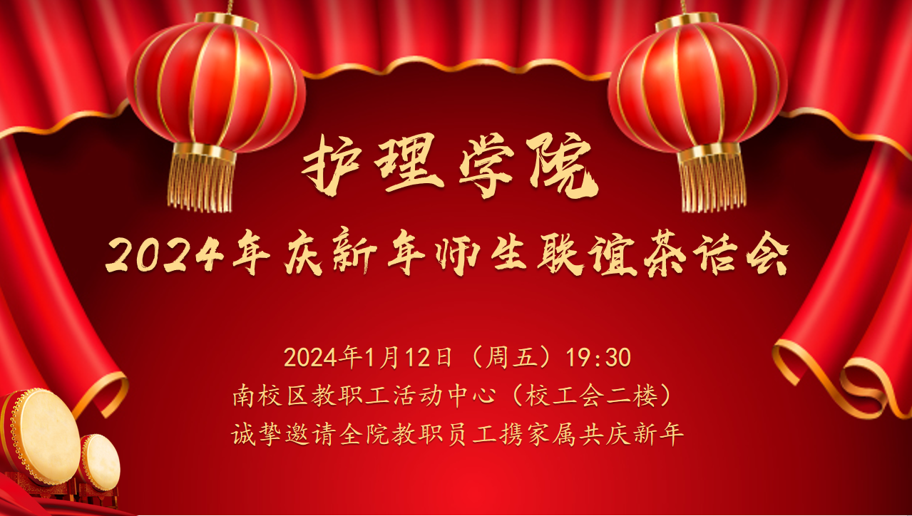 2024年1月12日晚,护理学院在校工会活动室举行2024年新春师生联谊茶话会,校工会领导、学院教职工、学生代表和职工家属90余人参加了活动。正在国外留学和探亲,以及在国内出差的的老师们在线上观看了节目并与现场人员进行了视频交流。