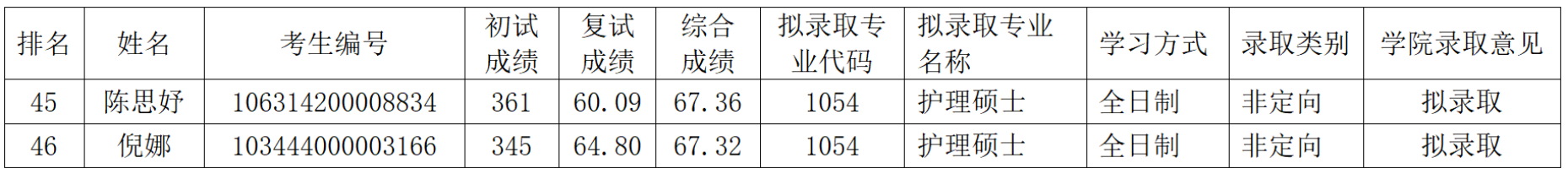 鉴于我院第一批调剂复试研究生中综合成绩排名第5名、第29名的拟录取考生因故放弃了拟录取资格,根据《365英国上市公司2024年硕士研究生复试录取工作方案》,在复试合格者中按综合成绩排名递补录取第45、46名的考生。其拟录取人员具体信息如下: