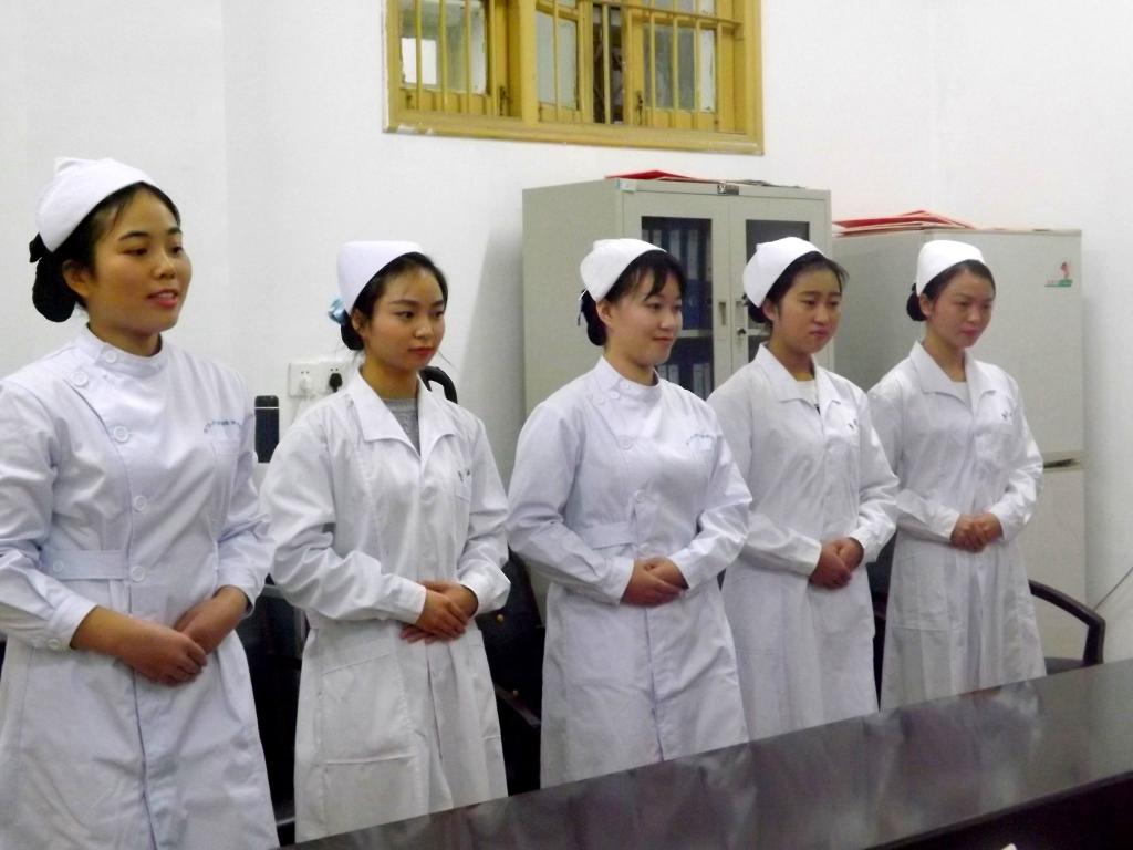 本次面试分五个一轮,依次面试。等候室里,同学们身着标准护士服,头戴燕尾帽,有的积极准备着面试的自我介绍,有的认真整理自己的仪容,期待充分展现出一名“白衣天使”的风采。