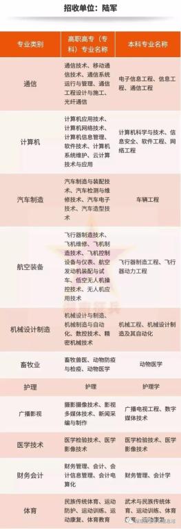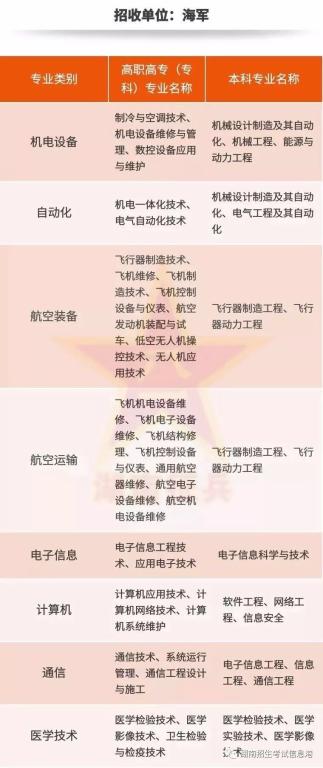 直招士官招收对象:男性普通高校应届、往届毕业生,所学专业符合部队需要(专业将在报名开通后公布),未婚,不超过24周岁;政治和体格条件,按照征集义务兵有关规定执行。招收的普通高等学校应届毕业生,所在高校和所学专业已开展职业技能鉴定的,应当取得国家颁发的中级以上职业资格证书。