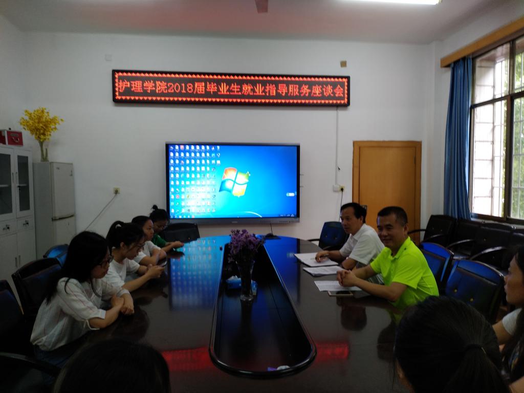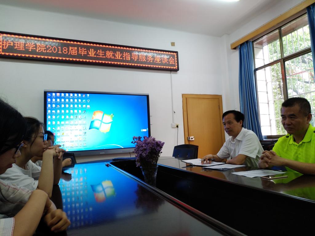 2018年6月7日,护理学院2018届毕业生就业指导服务座谈会在护理学院院办二楼会议室顺利召开。护理学院党委书记周浩,党委副书记彭建南出席座谈会,学工室主任李翼老师主持。