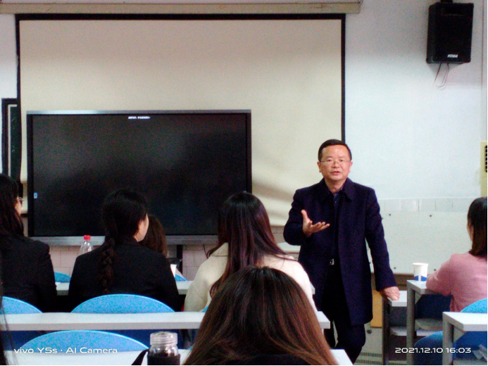随后,王学明副院长讲话。他向同学们介绍了优秀护理人才在南华大学年度招聘计划中的直接招聘指标数据以及医院的待遇情况,鼓励有意愿的同学拿出诚意,积极参与招聘面试。会上,他还对同学们提出来的相关疑问进行了详细解答。