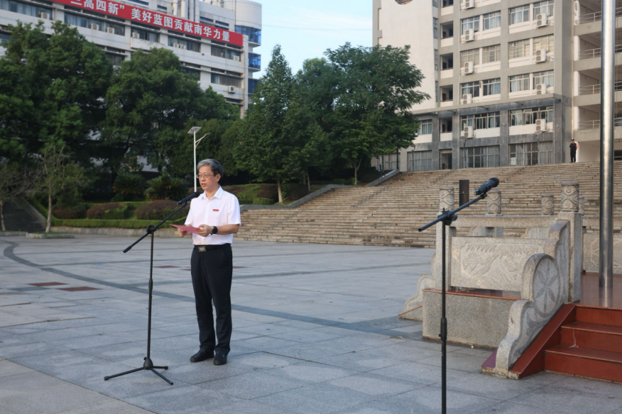 9月2日,南华大学2024年秋季学期第一次升国旗仪式在红湘校区南华广场和雨母校区田径场同时举行。全体在家校领导出席升旗仪式。红湘校区升国旗仪式由护理学院承办,学院党委书记袁春阳主持。