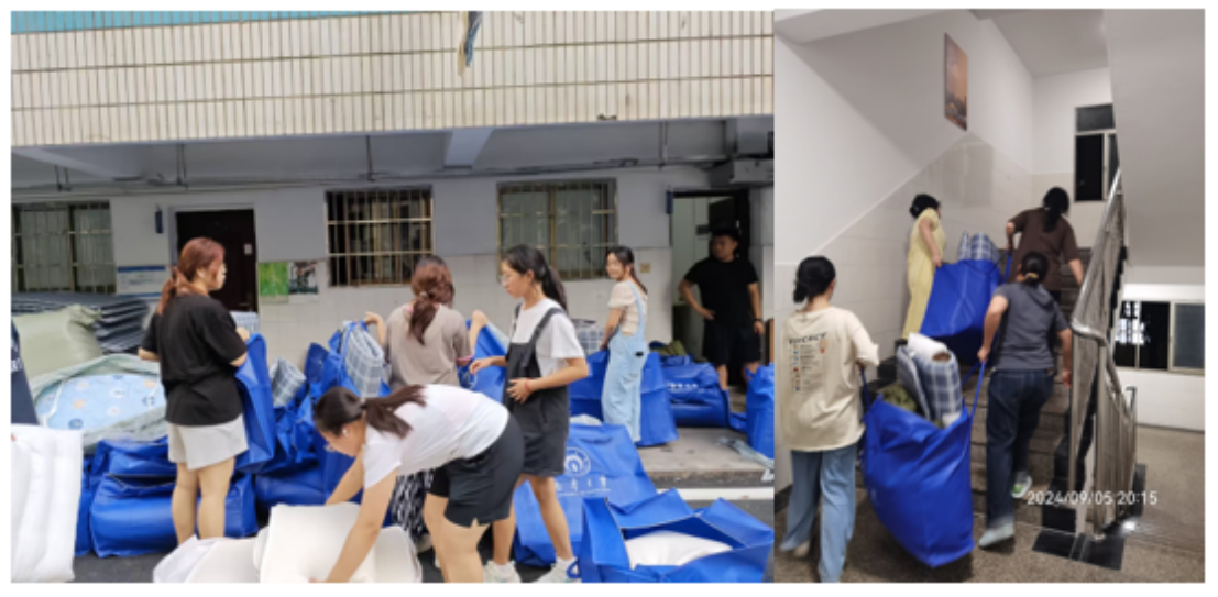 为充分做好2024级迎新准备工作,给新生带来一个舒适整洁、温暖有爱的学生宿舍环境,响应学院党委提出的实施“暖心工程”的号召,结合学校新学期开展爱国卫生运动的工作要求,9月4日和9月5日,护理学院组织2023级全体学生在求是园5栋、求是园6栋、致远园11栋、致远园14栋、致远园18栋的新生宿舍开展卫生大扫除志愿服务活动,搬运新生床上用品。