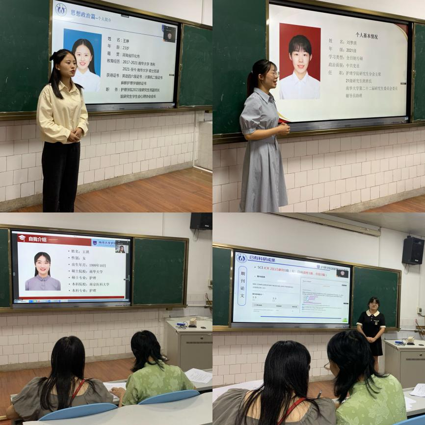 经过前期个人申报和学院初审等环节后,共有四位优秀同学作为候选人取得参加本次答辩资格。她们分别是以第一作者的身份发表了一篇SCI二区论文和一篇卓越期刊论文、积极投身公益服务活动的王婷同学;护理学院研究生分会主席、连续两年获得校一等奖学金,位居年级第一的刘梦琪同学;2023年“外研社国才杯”三等奖获得者,两篇SCI论文和两篇中文期刊论文作者的王琪同学;和连续两年获得了学业奖学金、学术上累计发表学术论文六篇的陈付蓉同学。