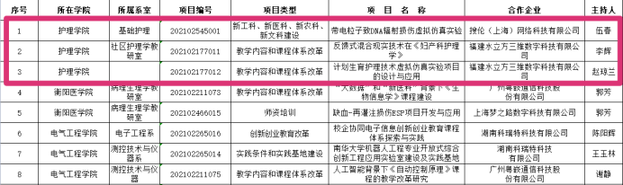 近日,教育部高等教育司公布2021年第二批产学合作协同育人项目立项名单,全国共有1076所高校的项目入选。此次公示的名单中,南华大学有72个项目获批立项。其中,护理学院获批立项3项。