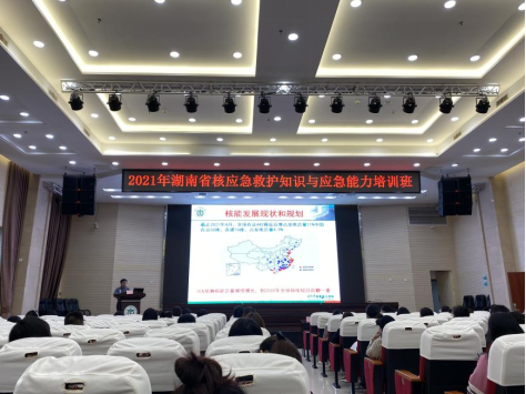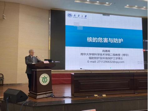 南华大学核科学技术学院二级教授、国家核工程实验教学示范中心主任、氡湖南省重点实验室主任肖德涛以“核的危害与防护”为题,从核的发现与作用开始,循序渐进地向大家介绍放射性对人类造成危害、涉核实践存在的潜在风险、核与辐射安全、我国辐射安全与防护法规体系及管理框架。肖教授深入浅出的解说,使参加培训的人员对核的相关危害与防护有了更加全面而深刻的认识。