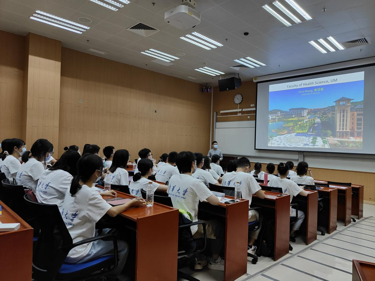 10月10日上午,南华大学—澳门大学“医药与健康科学”专题研学项目线下活动在澳门大学正式启动,南华大学医科类专业44名学生参加此次培训活动。护理学院院长助理、教学办主任吴飞老师率领9名经过遴选的护理学专业优秀本科生参加此次研学活动。