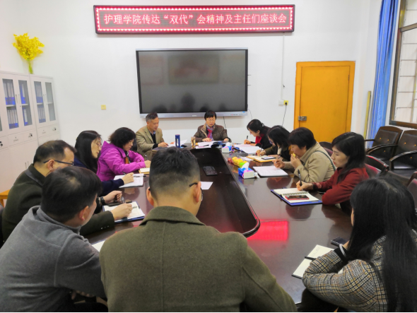2021年3月19日下午,365英国上市公司在学院二楼会议室召开传达“双代”会精神及主任们座谈会。护理学院院长廖力、副书记彭建南、副院长曾谷清、何平平,院办、教务办、学工办及各教研室主任们参加会议。会议由院长廖力主持。