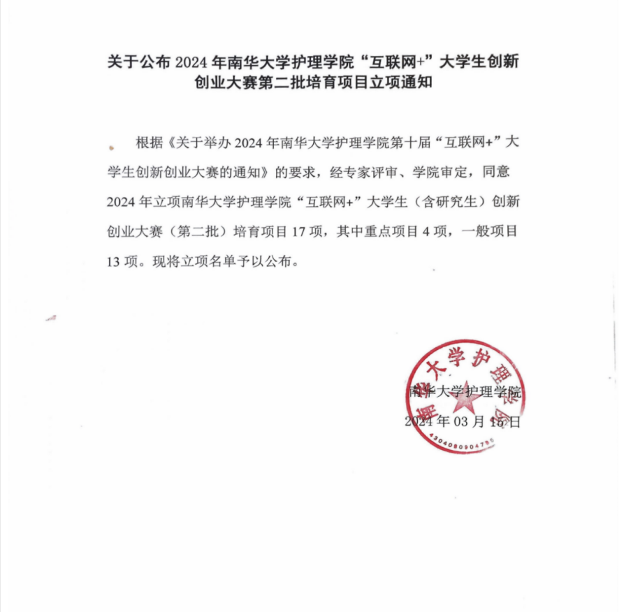 上一条:关于公布中国国际大学生创新大赛(2024)南华大学校赛护理学院推荐项目的通知 下一条:【校企合作】护理学院举行湖南省智慧优护工程研究中心建设研讨会