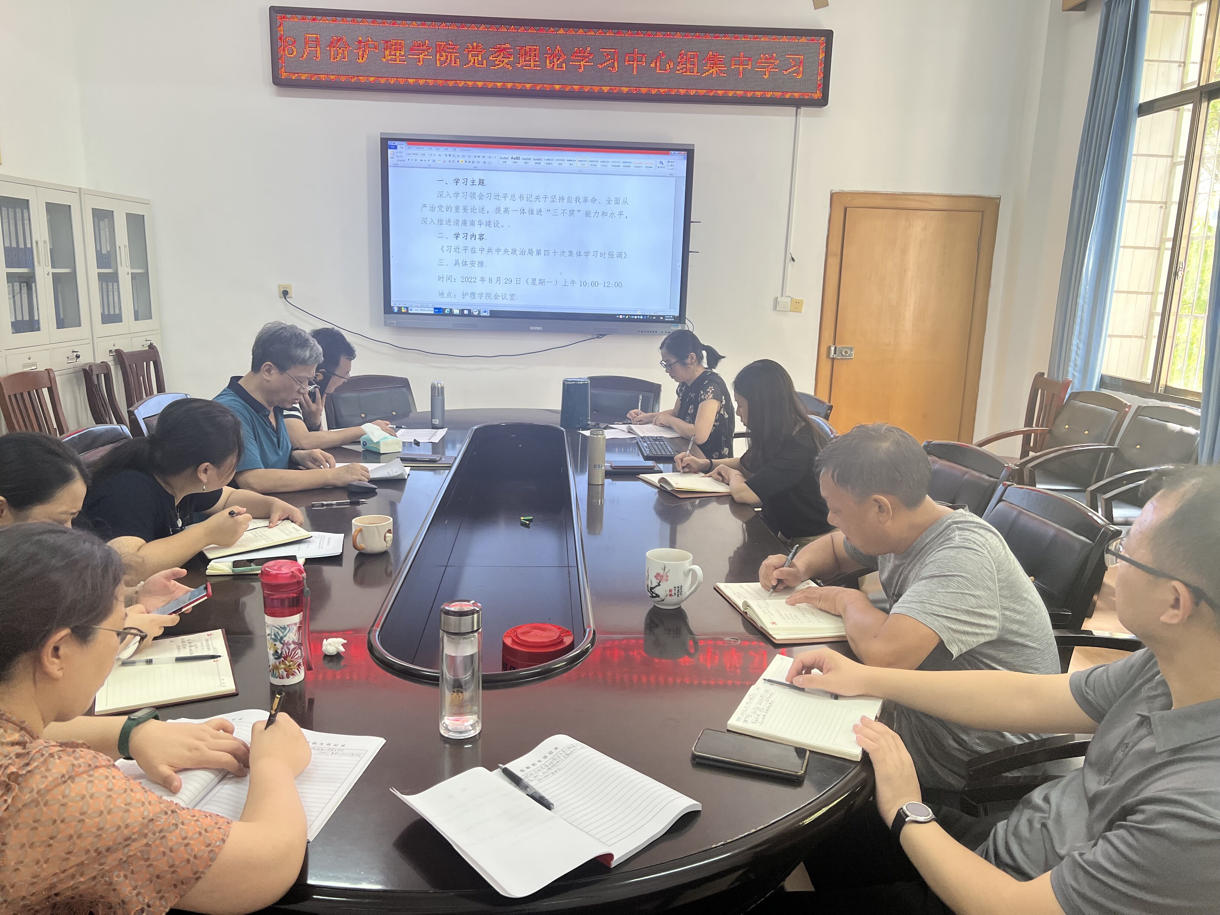 8月29日上午,护理学院党委理论学习中心组在护理学院会议室开展8月份集中学习.党委书记袁春阳主持学习,全体院领导、院党委委员、院办主任和支部书记参加学习。