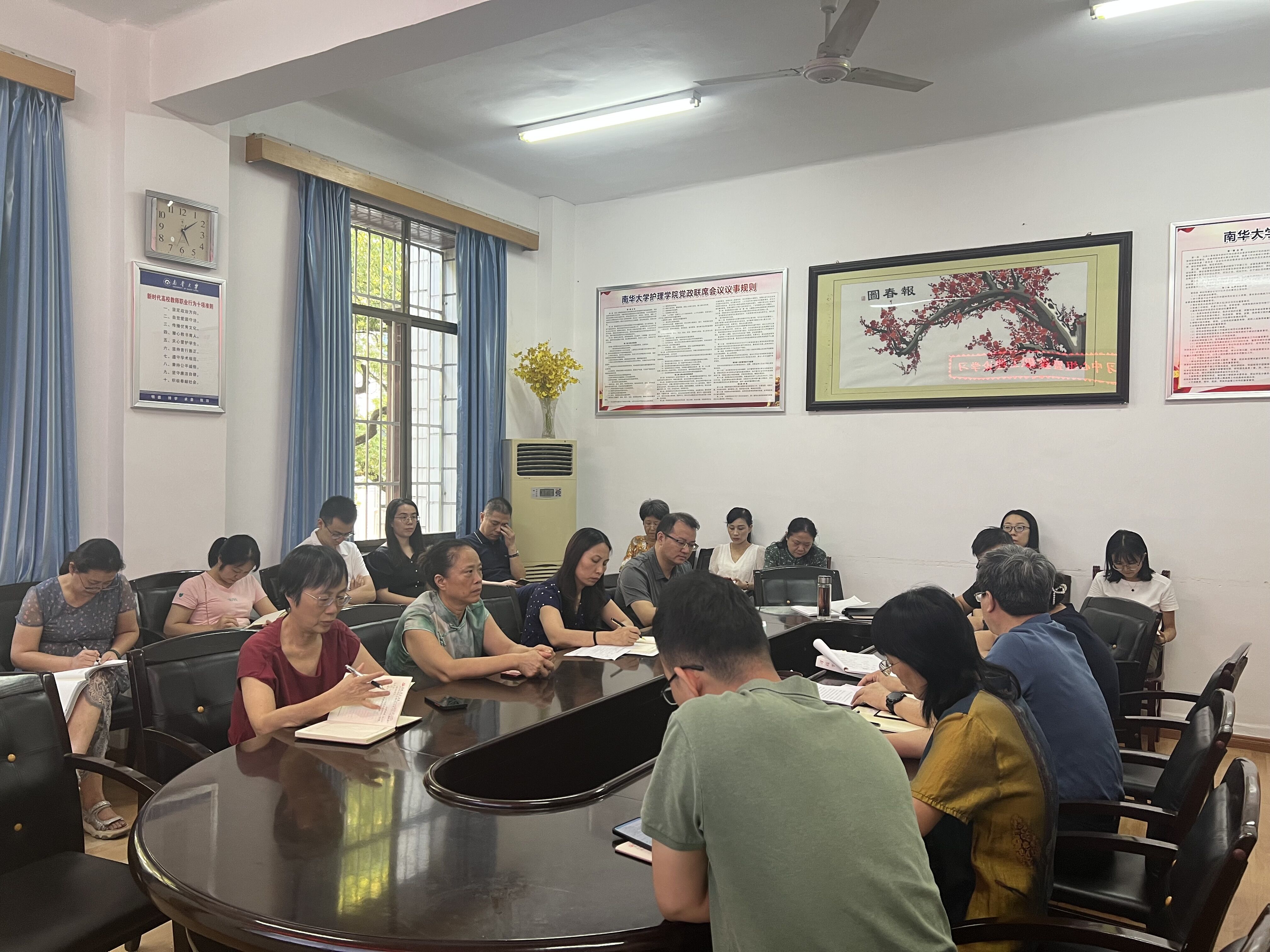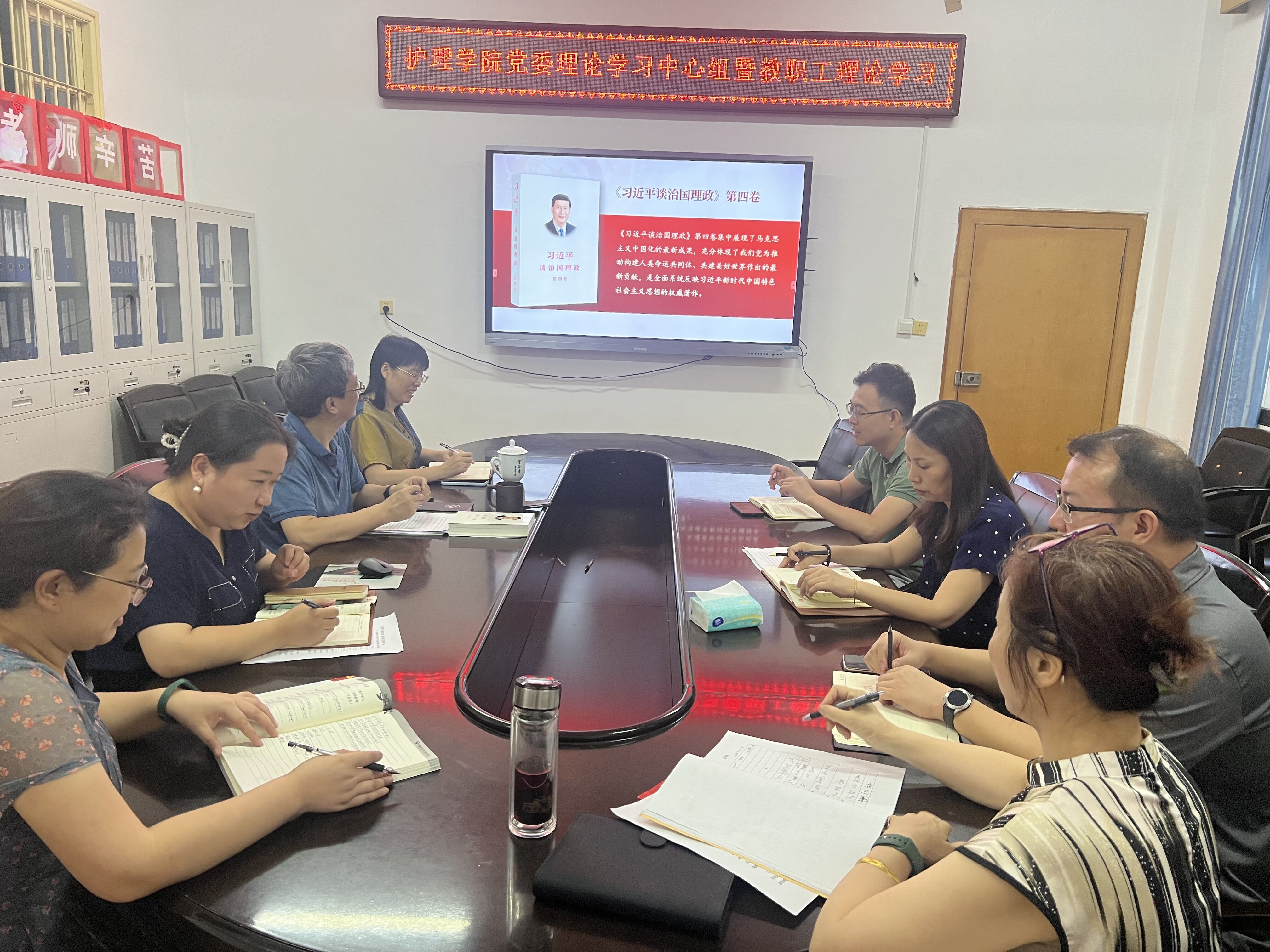 9月14日下午,护理学院党委理论学习中心组2022年第六次集中学习暨教职工理论学习在护理学院会议室举行。院党委书记袁春阳主持,学院院领导和全体没有上课的教职员工参加学习。
