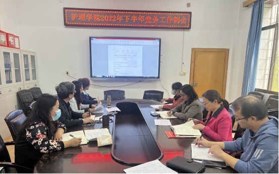 11月7日上午,护理学院党委在学院会议室召开党务工作会议,专题学习《中国共产党章程(修正案)》。会议由党委书记袁春阳主持,党委副书记、院长李忠玉出席会议。参加学习的人员有院党委成员、党政办主任和各支部书记。