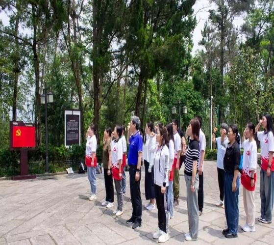 在杨开慧陵园,全体党员在党旗下重温入党誓词,再一次做出了对党和人民的庄严承诺。面对党旗,面对着毛泽东主席手写的大型词碑《蝶恋花·答李淑一》,全体成员表达了对革命先烈的深切悼念和崇高敬意,对革命先烈生死不渝的革命情怀的景仰和向往。