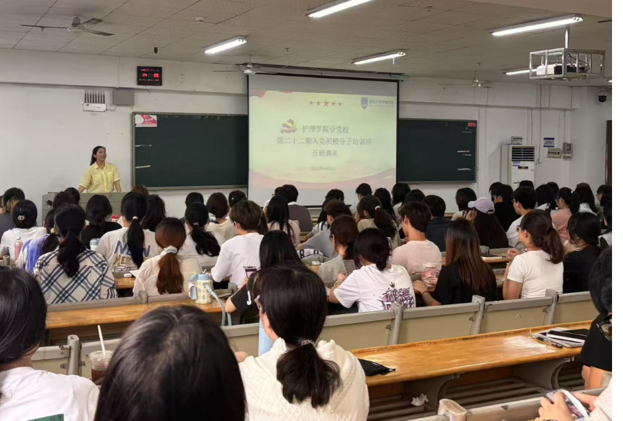 4月11日下午,护理学院第二十二期入党积极分子培训班开班典礼在南华楼311举行。学院党委副书记王祥出席,师生联合第一党支部书记兼培训班班主任陈小兰主持,全院150余名入党积极分子参加。