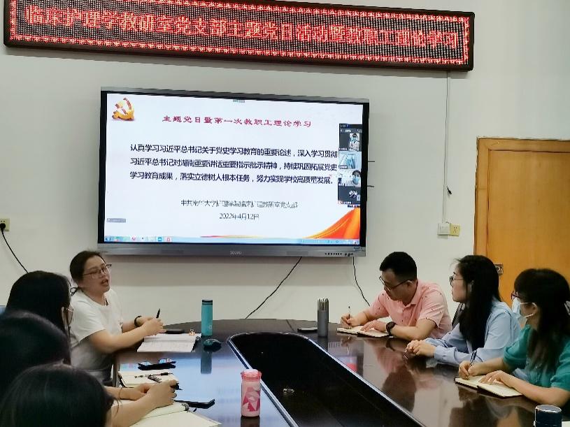 2022年4月12日上午,365英国上市公司临床护理教研室党支部在护理学院207教室开展主题党日活动暨2022年第一次教职工理论学习。会议采用线上+线下相结合的模式。党支部书记李健芝主持会议,院党委委员吴飞、院分工会主席、副处级辅导员彭建南出席会议,教研室全体教职工及研究生党员及入党积极分子参加了学习。