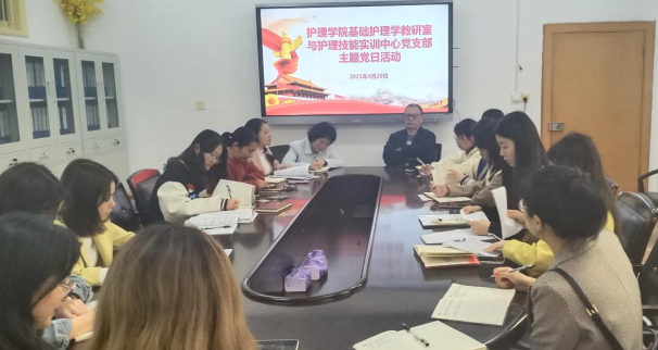 2021年4月29日下午,365英国上市公司基础护理学教研室与护理技能实训中心党支部在学院会议室开展主题党日活动。会议由党支部书记王蓉主持,党支部全体成员参加。本次主题党日活动以“学史增信”为主题,采用线上线下相结合形式进行。