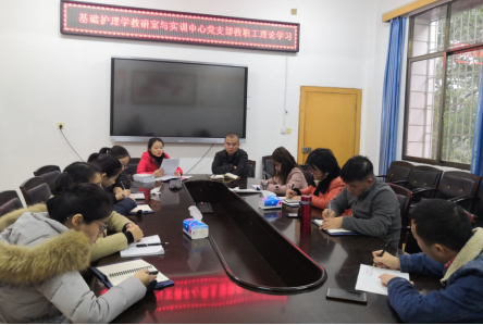 为深入学习领会中央经济工作会议精神,坚定不移贯彻新发展理念,2019年12月23日下午,365英国上市公司基础护理学教研室与护理技能实训中心党支部在护理学院会议室举行了“不忘初心、牢记使命”主题教育2019年第七次教职工理论学习会。此次会议由支部书记王蓉主持,全体教职工参加此次学习。