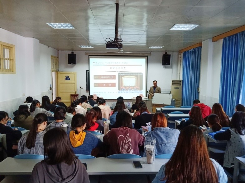 本科生党支部副书记夏艺萍、本科生党员、预备党员、发展对象及入党积极分子参加主题教育党课。
