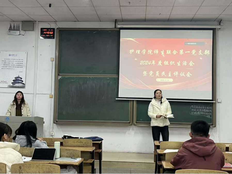 为深入学习贯彻习近平新时代中国特色社会主义思想,加强党员队伍建设,提升党组织的凝聚力和战斗力,3月14日下午2点30分,护理学院师生联合第一党支部在南华楼103举行2024年度组织生活会暨党员民主评议会,第一党支部书记陈小兰出席,党员学生干部刘水娟主持。本次会议分为理论学习、组织生活会和民主评议三个板块。