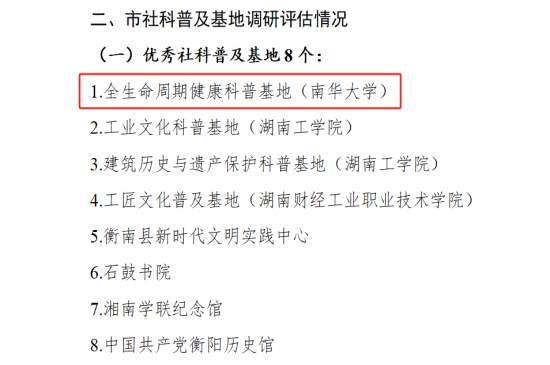 全生命周期健康科普基地获评2024年衡阳市优秀社科普及基地