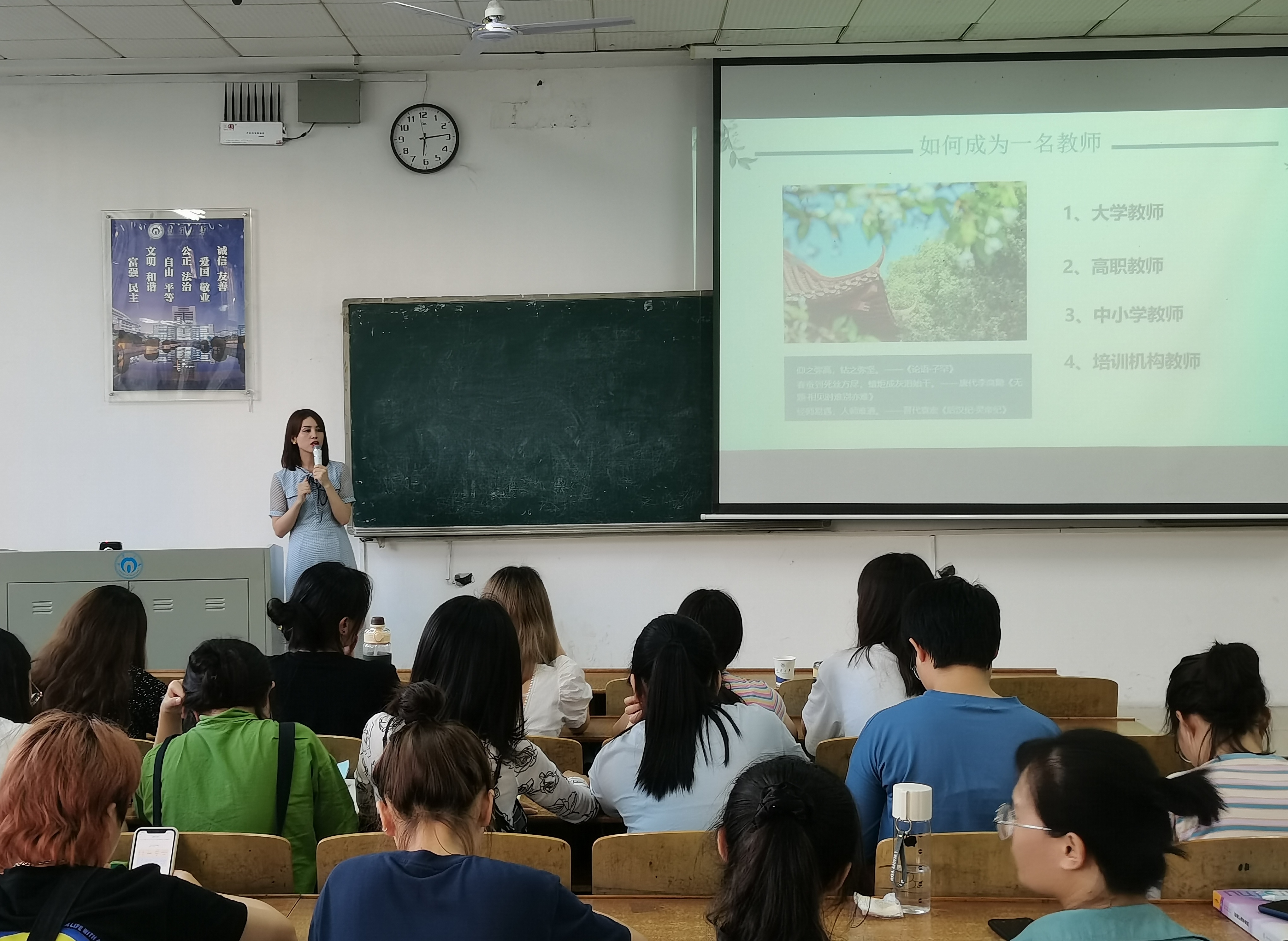 首先,医生代表周思简单介绍自己的工作单位(邵阳市中心医院)后,就大学生职业生涯规划向同学们提出诸多建议。接着,公司代表黄波向大家展示医学与保险行业结合发展的多种方向,打破了固有思维,让大家眼前一亮。随后,创业代表周才丽结合自身经验,强调了学习的重要性,并提醒学弟学妹们创业不能急于一时,需要大家从各方面提升自己,开拓视野和思维。最后,教师代表易利娜从人生规划出发,告诉大家认清自己是成功的起点,每位同学都需要确立明确清晰的目标。