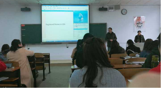 谢丽珍教授介绍了护理专业前景与个人职业发展,给我们讲解中美护士地位差异,美国护士学习及上升发展途径,介绍了ISPN国际护士证书以及NCLEX-RN美国注册护士考试,勉励同学们重视英语的学习。