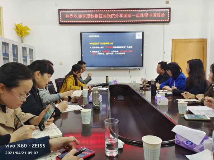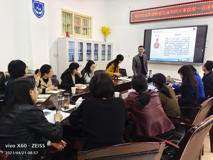 4月21日上午,湖南工学院李理教授莅临我院分享国家一流课程申请经验。护理学院副院长曾谷清、何平平,学院一流课程教学团队全体教师参加会议。交流会在护理学院二楼会议室举行,会议由何平平副院长主持。