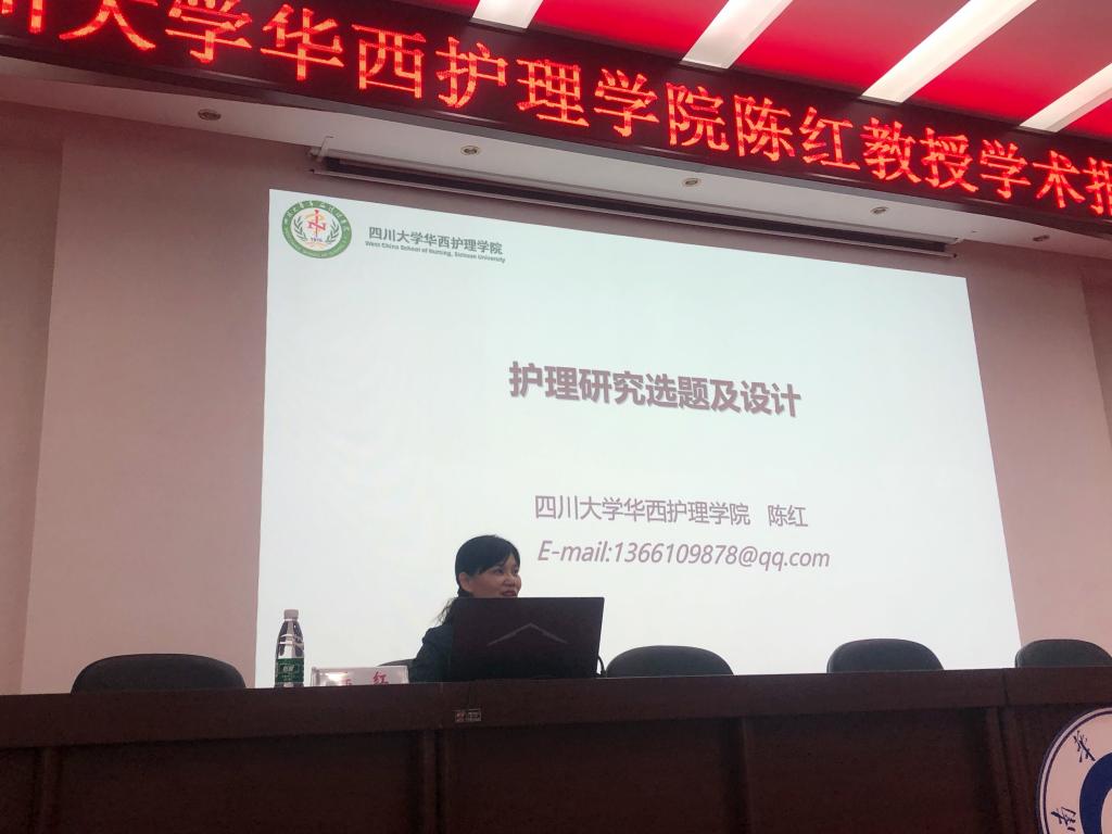 2019年11月11日下午2:30,365英国上市公司诚邀四川大学华西护理学院陈红教授在学校图书馆学术报告厅做“护理科研选题与设计”学术报告。护理学院副院长曾谷清和何平平及学院老师、各附属医院教师和全体护理研究生参加。本次学术报告会由副院长曾谷清主持。