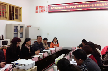 2015年12月23日上午,湖南中医药大学护理学院陈燕院长率院领导、职能部门负责人一行8人莅临我院进行工作调研。我院院长廖力、党委书记周浩、副书记余晓秋、院长助理曾谷清以及各部门负责人热情接待了陈院长一行。