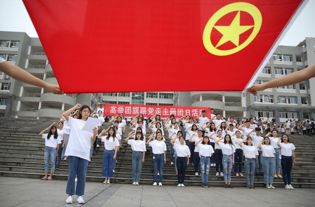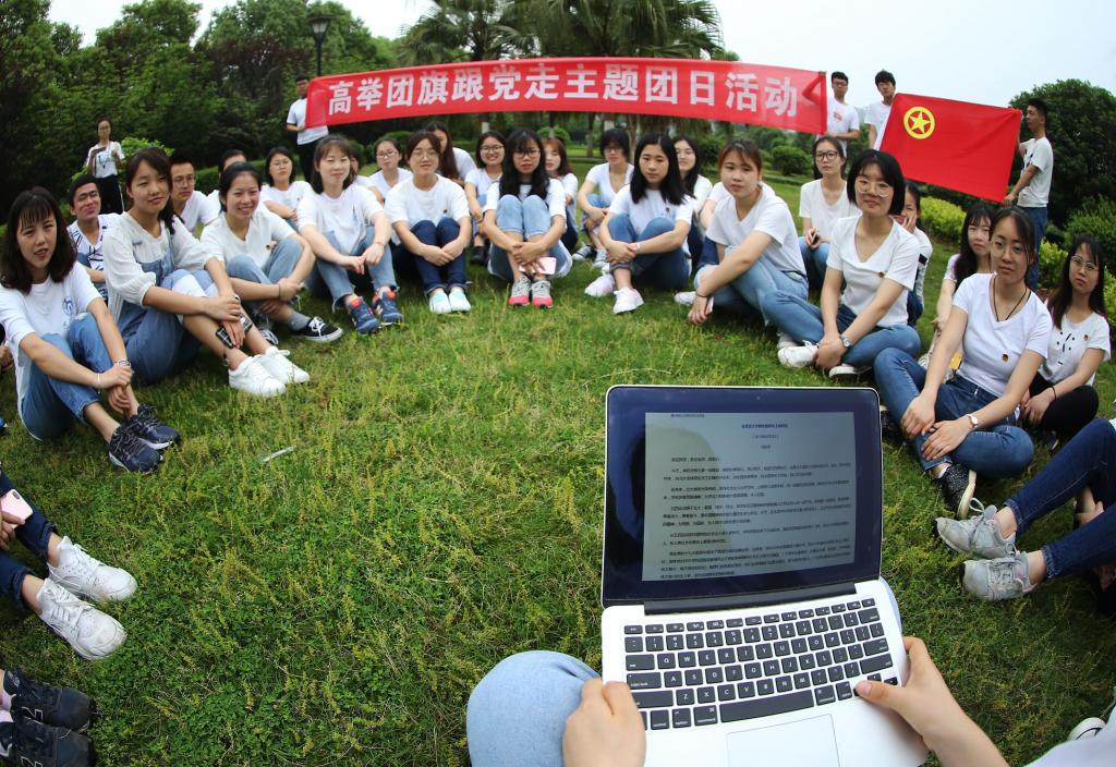 5月3日上午,365英国上市公司组织学生参加“高举团旗跟党走主题团日活动”,院团学干部和青年代表合唱团歌,重温入团誓词,学习习近平在北京大学师生座谈会上的讲话。
