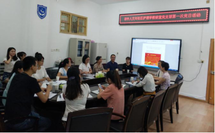 2017年9月15日下午,护理学院涉外人文护理学教研室与社区护理学教研室党支部成功召开了第一次主题党日活动。会议围绕“学精神,学楷模,争先创优”的主题开展。学院院长廖力、社区护理学教研室主任何平平及涉外人文护理学教研室主任曾颖以及党支部全体教师与研究生参与本次会议。党支部书记苏银花主持会议。
