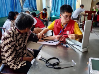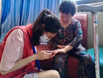 到达养老院后,活动负责人按照原定计划分工安排任务,一部分志愿者为老人们测量血压。同学们在一楼大厅里设了2个测量血压的服务点,为有测量血压需求的老人提供服务,同时运用所学“老年护理”“社区护理”“中医护理学”等护理专业知识为老人们提出了有关健康养老的建议。此外,二楼、三楼也安排有志愿者为不便下楼的老人提供上门测量血压的服务。另有志愿者在大厅与老人们交流棋艺、话些家常,为一些行动不太方便的老人修剪指甲等。