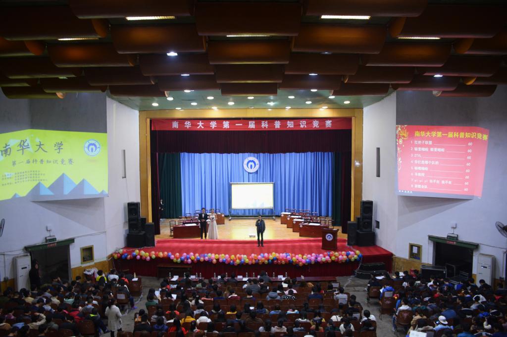 12月9日晚19:30,由共青团南华大学委员会主办,电气工程学院及护理学院承办的南华大学第一届科普知识竞赛决赛在红湘校区南校大礼堂成功举行。校团委书记刘文君、电气工程学院党委副书记刘江、电气工程学院团委书记周忠露、护理学院团委书记夏艺萍及校学生会主席薛令君受邀出席担任大赛评委。