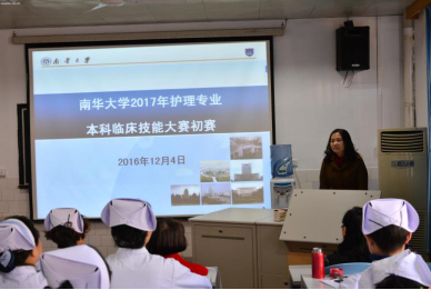 2016年12月4日下午,南华大学2017年护理专业本科临床技能竞赛初赛在护理学院成功举行。本次竞赛受到南华大学教务处、医学部和船山学院等部门的大力支持。赛前护理学院和船山学院有191名2014级护理学专业本科学生报名参赛,竞赛委员会通过上学期护理学基础理论和操作考试成绩、英语四六级成绩和综合素质等情况进行评比,最终筛选出111名参赛选手参加竞赛。
