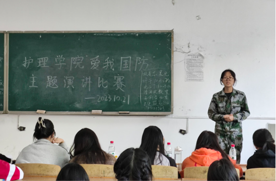 为深入贯彻落实党的二十大精神,激发广大青年学子赓续红色血脉、热爱人民军队、矢志报国强军的政治热情,10月21日中午,护理学院在南华楼112教室成功举办“爱我国防”主题演讲选拔赛。2023级新生班主任李涵冰老师及团学干部出席了本次比赛。