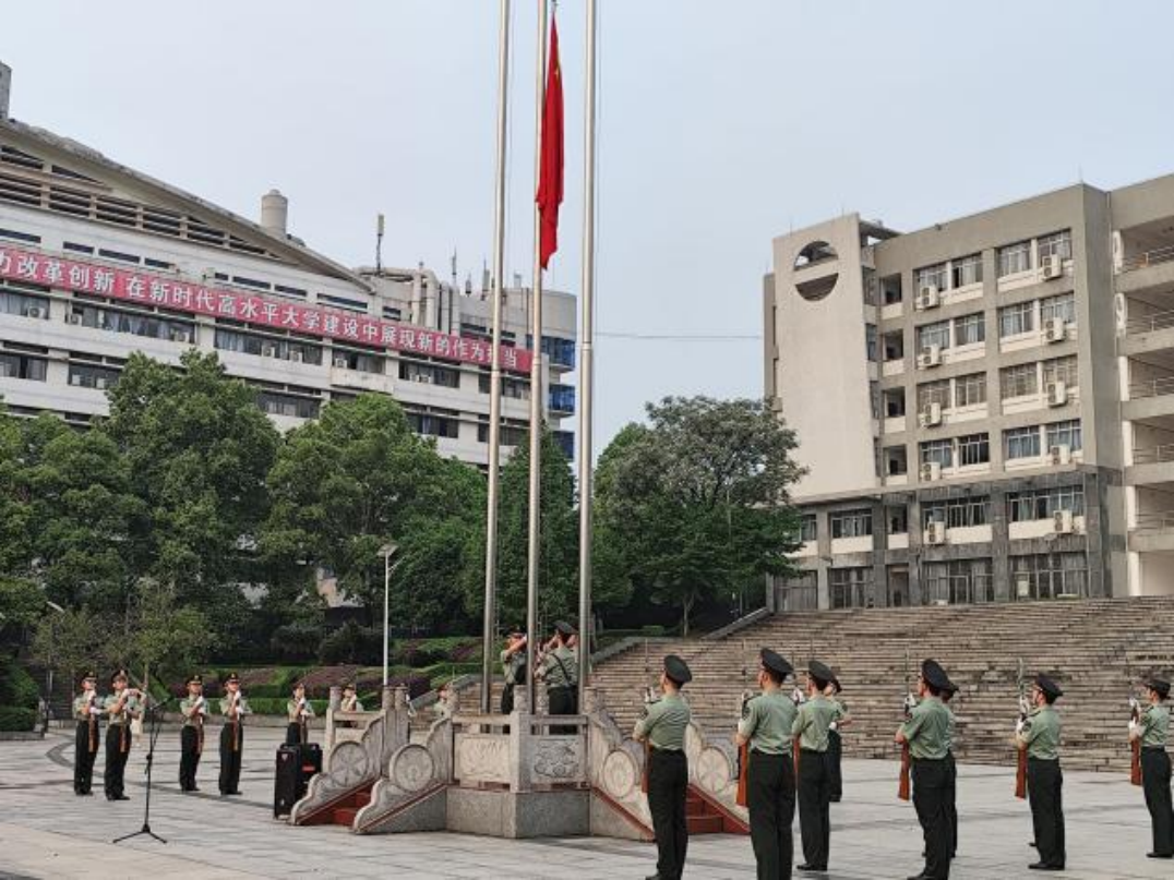 仪式伊始,袁春阳讲述了本次升旗仪式的流程和意义。上午7点整,仪式正式开始。在全体师生的注目下,国旗护卫队踏着整齐统一的步伐护送国旗入场。伴随着庄严的《义勇军进行曲》旋律,五星红旗冉冉升起,迎风飘扬,全体师生满怀深情地向国旗行注目礼并合唱国歌,表达了对祖国的无尽热爱和崇高敬意。