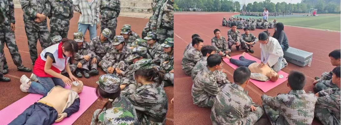 护理学院40余名硕士研究生组成了12支培训小分队,下到每一个军训连队,组织全体2024级本科新生进行心肺复苏急救的操作训练,每一位参训学员都在模拟人上进行了心肺复苏的实操,亲身实践了心肺复苏急救的整个流程。