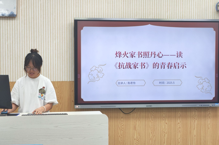 分享过程中,学生代表们通过声情并茂的讲述、图文并茂的PPT展示,将家书背后的故事生动呈现。现场师生仿佛穿越时空,置身于那个风雨如晦的年代,深刻感受到革命先辈的热血与悲壮,现场不时响起共鸣掌声。