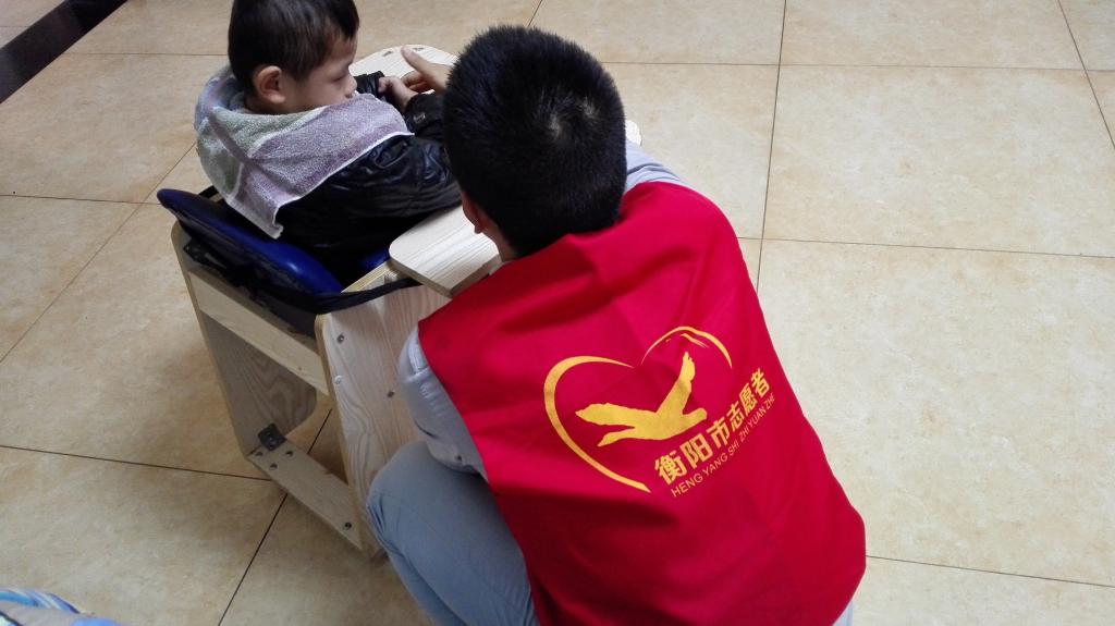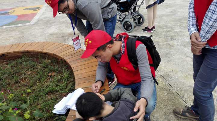 看到志愿者们的到来,“小天使们”晕开了开心的笑容。志愿者们分成几个组,在每个监护阿姨的带领下,走近了这帮拥有天使笑容的稚嫩的孩子们。为更好地拉近志愿者与孩子的距离,感受孩子们的内心世界,活动采用一对一照顾的方式。志愿者们或带领孩子们玩游戏、荡秋千、玩蹦床;或教“小天使们”写字、绘画。更有志愿者耐心细心地喂孩子们吃带来的零食瓜果。时间在幸福的暖流中溜走,虽然相处时间短暂,但志愿者跟孩子们却早已建立起心灵的桥梁。