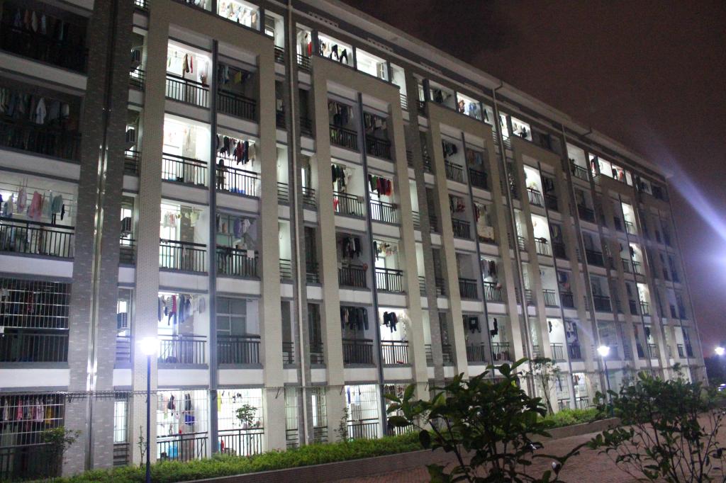 活动前夕,雨母校区笃行园五栋成功通过灯光摆出“60”的宏伟景观。(禹利达摄)