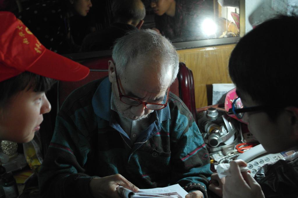 本次活动最让人震撼和感动的是何宪老人,作为南华大学核科学技术学院的创始人,他是伟大的。同时,半个世纪的任教,他亦是发光的。几十年来,风采依旧。1917年,何老师中风犯病之后,也依然坚持编写教材,即使是躺在轮椅上,心中却依然坚持着对核研究的热情。在与老人的交谈的同时,志愿者也细心地为老人测量血压。