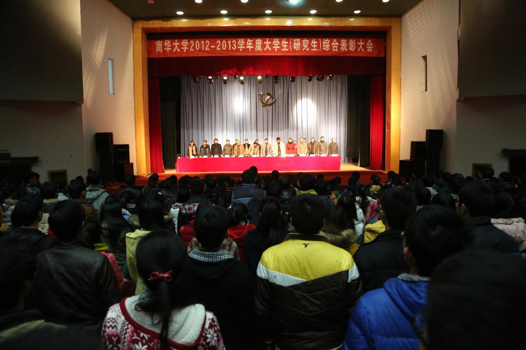 12月27日晚,南华大学2012-2013学年度大学生(研究生)综合表彰大会于南校大礼堂隆重举行,校党委书记邹树梁、校长文格波、副校长刘升学、正校级督导赵红出席会议,对2012-2013学年度先进集体和优秀学生进行颁奖表彰。