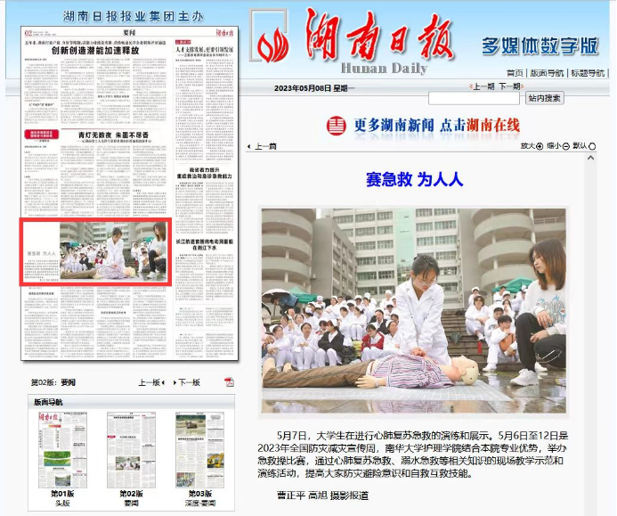 活动还安排了行心肺复苏急救的现场展示,由护理技术技能促进协会的同学进行详细讲解,同时还邀请了在湖南省护理技术技能竞赛中获奖的同学现场示范,演示过程中表现出沉着冷静的心理素质和熟练的操作技巧,赢得在场观众的喝彩。